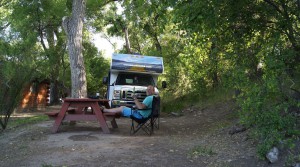 mij een beetje tegen had daar meer van verwacht. Wat een prachtige weg is dat. Even geen snel weg maar een 2 baans weggetje dwars door de bossen en bergen. Dat is pas sturen. Flinke afdalingen met diverse haarspeldbochten. Rond 16:00 uur kwamen wij aan op camping Rancho. Deze zat echter vol. Jammer zag er prima uit. Lekker tussen de bomen mooie ruime plekken maar helaas. Weer achteruit terug en naar de volgende. Ruim 10 mijl verder komen wij aan op Lo Lo Mai Springs. Worden rond geleid op een golf karretje over de camping en hij laat ons wat plekjes zien. De laatste plek zag eruit als een paradijsje. Tussen de bomen in, beneden hoor je een kabbelende beek stromen (Oak Creek) en is een kampvuur plaats. Ik wil hier nooit meer weg.