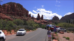 Vandaag verlaten wij het paradijs weer genaamd “Lo lo mai” en wij gaan richting campground Williams Grand Canyon. Maar niet voordat wij nog een bezoekje brengen aan een prachtig gelegen kapelletje in Sedona. Helaas mochten wij alleen de buitenkant zien want het straatje was verboden voor campers. Er waren daar ook geen pakeer plaatsen die groot genoeg waren. En om een bekeuring daarvoor te riskeren was het ook niet waard. Vanuit Sedona reden wij weer terug over een prachtige bergweg langs de Oak Creek, een riviertje die dat hele dal heeft uit geslepen en heeft gevormd. Nu een prachtig natuur gebied. Daar een prachtig uitzicht punt bezocht en langs indianen kraampjes gelopen. De kraampjes lagen vol sieraden die handgemaakt zijn. Er stonden echter geen prijzen bij. Dus alleen kijken en niet kopen. Verder gereden naar Flagstaff en verder naar Williams. Hoe dichter wij bij Williams aan kwamen hoe slechter het weer werd. Het was er koud, zo rond de 4 graden celsius. En het regende af en toe met hagel. Wel een groot verschil met Cottonwood waar het ruim 25 graden was. Morgen wordt het een belangrijke dag op naar de Grand Canyon. Ron